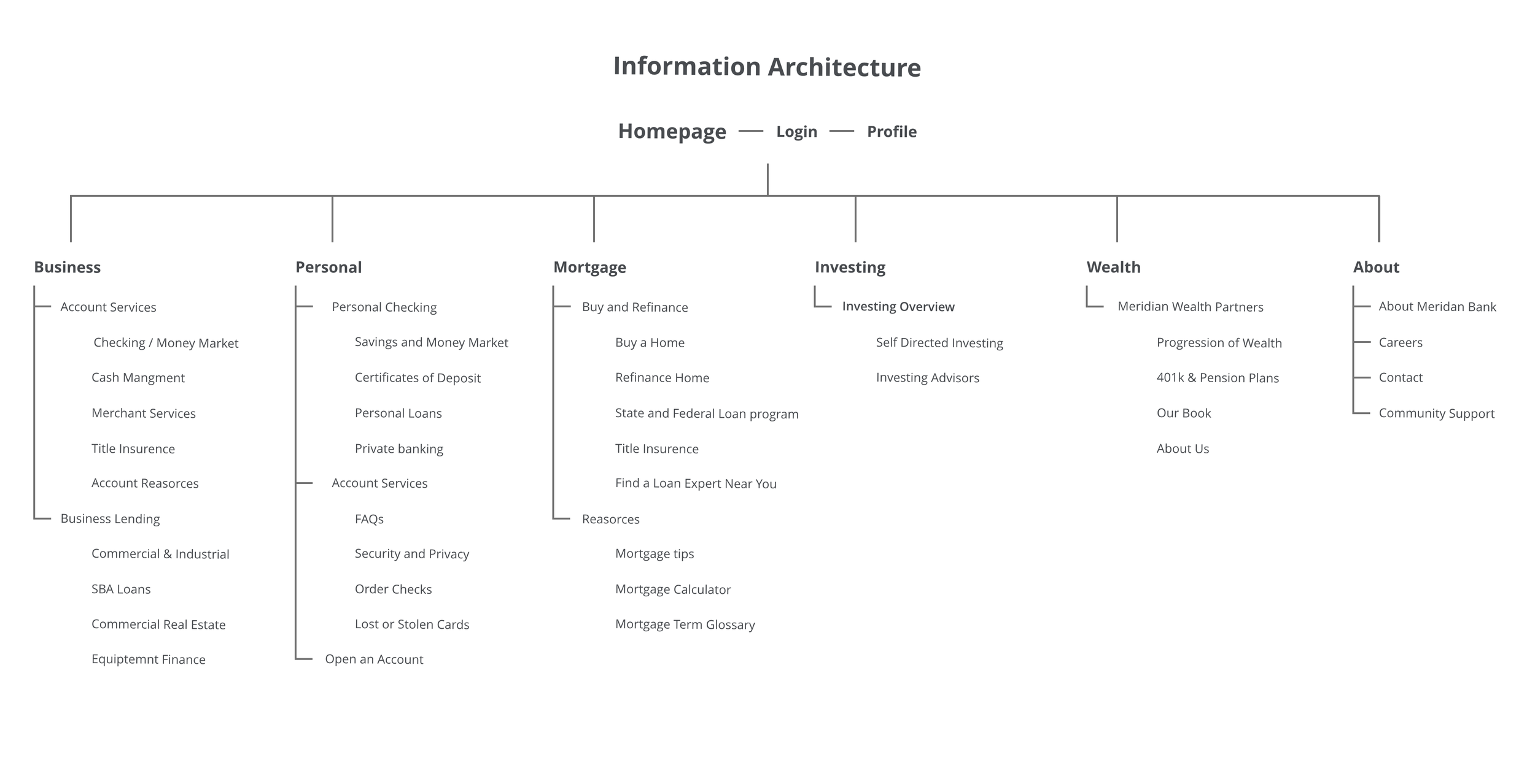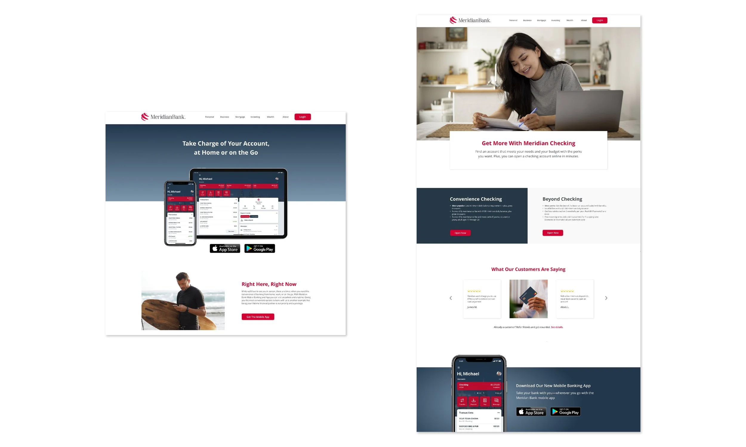 Following the creative rebrand for Meridian Bank, the next step was to implement this new look on their website. Over the years, the website became a mix of different styles which were inconsistent with each other and the overall brand. My goal was to update all of the web pages and improve the user experience of the site.